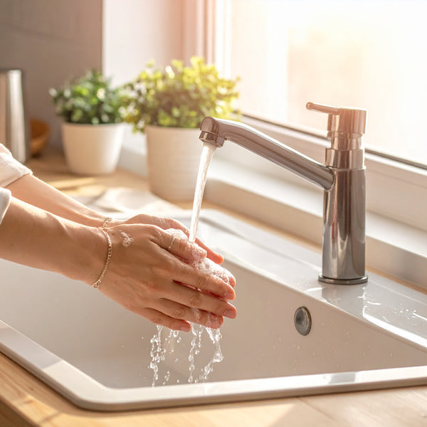 Wasche dir gründlich die Hände mit Seife und warmem Wasser und trockne sie vollständig ab.