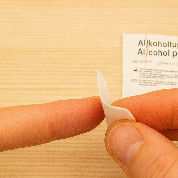 Reinige die gewählte Stelle mit einem Alkoholtupfer. Wische in kreisenden Bewegungen von der Mitte nach außen und lasse die Stelle an der Luft trocknen, um eine Verunreinigung des Blutes zu vermeiden.