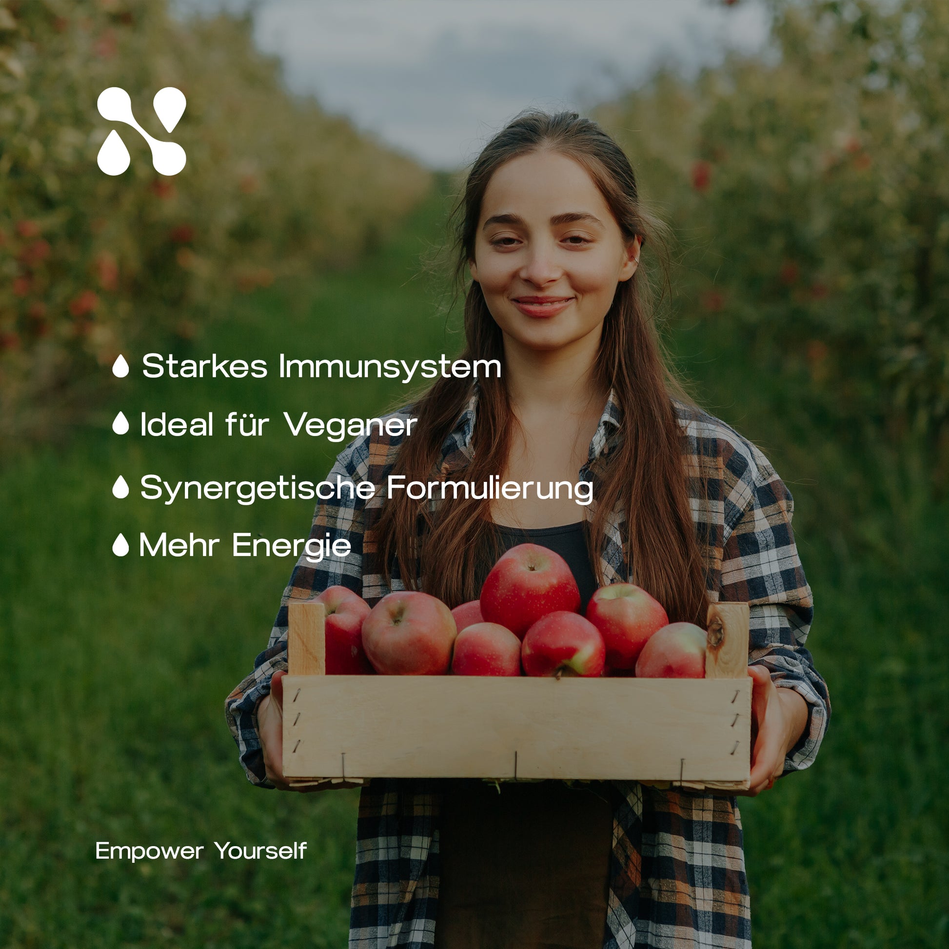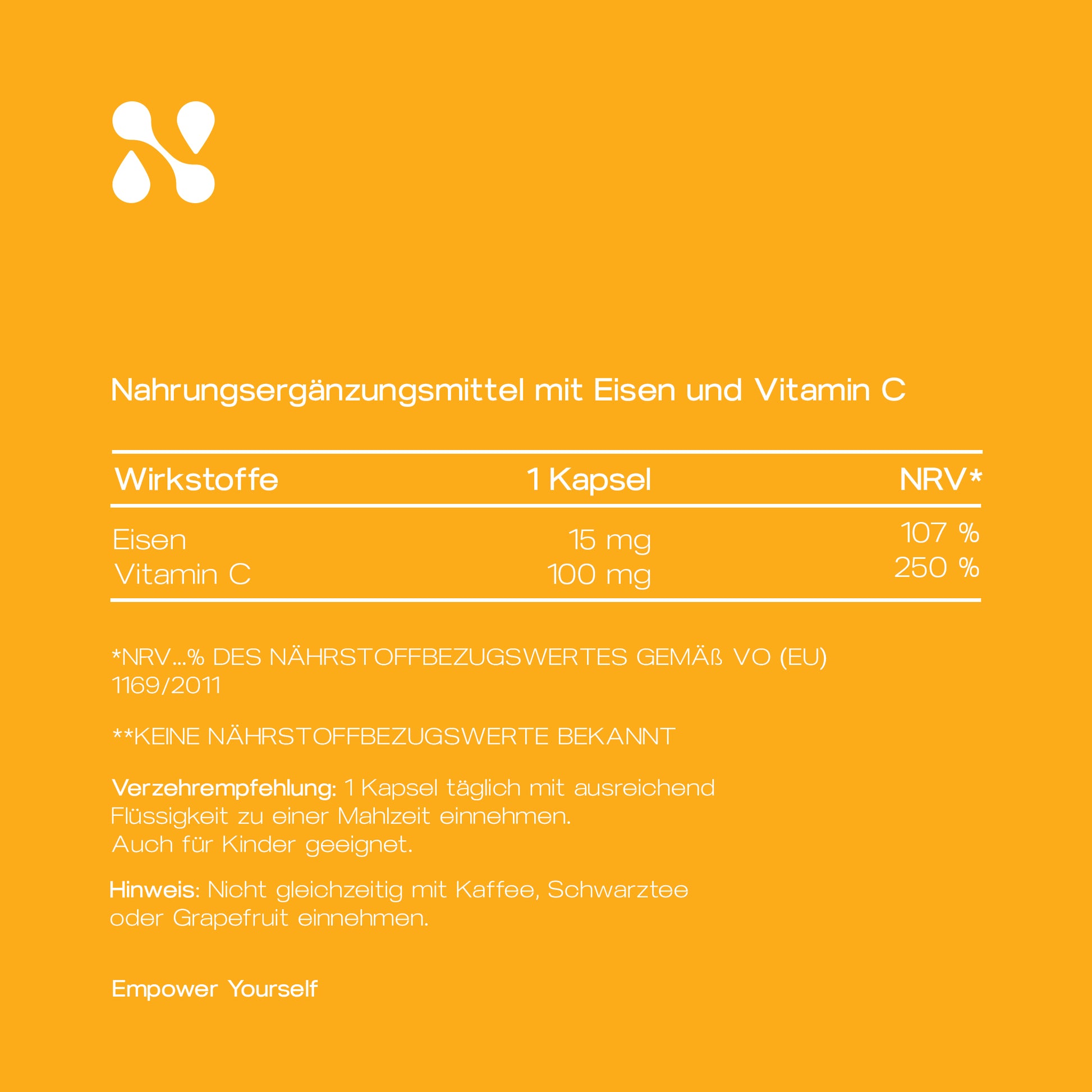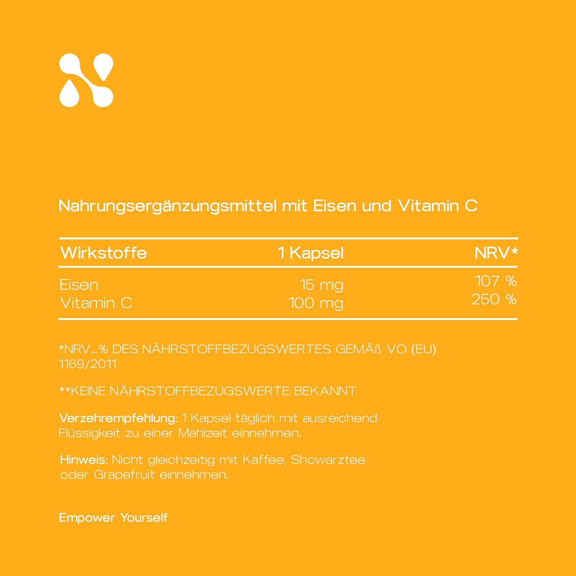 Kombiniert mit Vitamin C, das die Aufnahme von Eisen verbessert und dein Immunsystem stärkt, bietet unser Eisen & Vitamin C Supplement die optimale Unterstützung für ein aktives und vitales Leben.