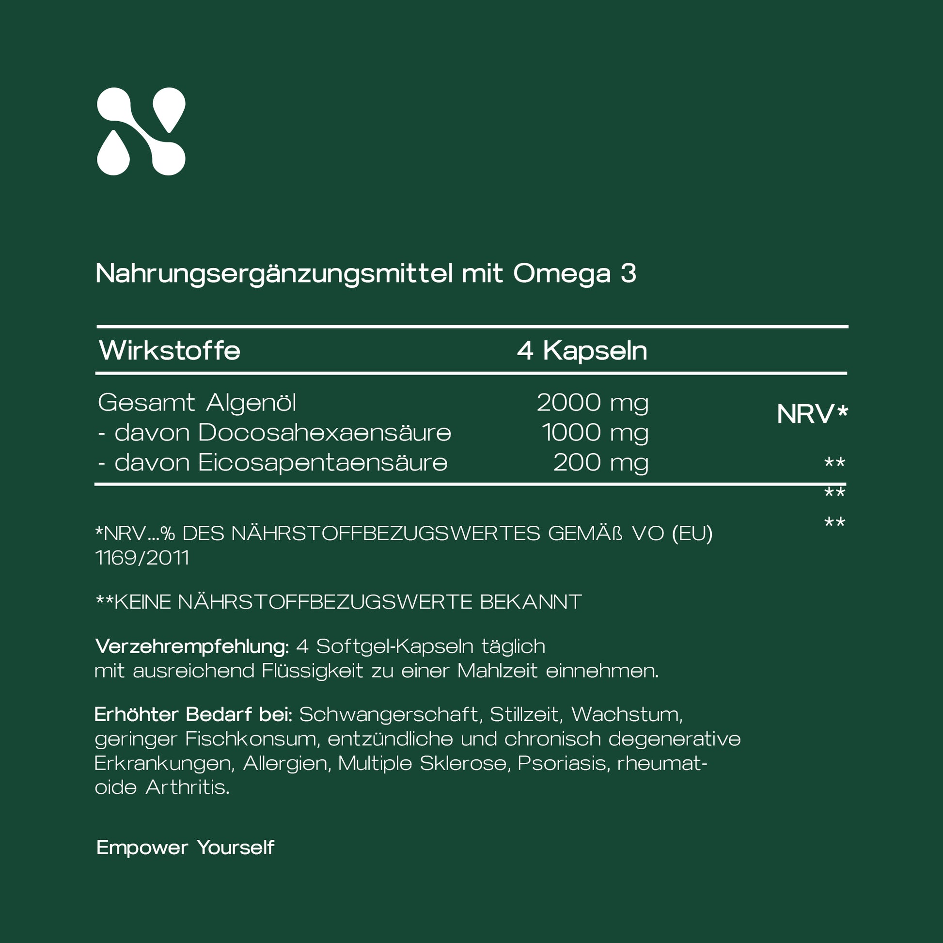Zutaten: Öl aus der Mikroalge Schizochytrium sp., modifizierte Stärke,