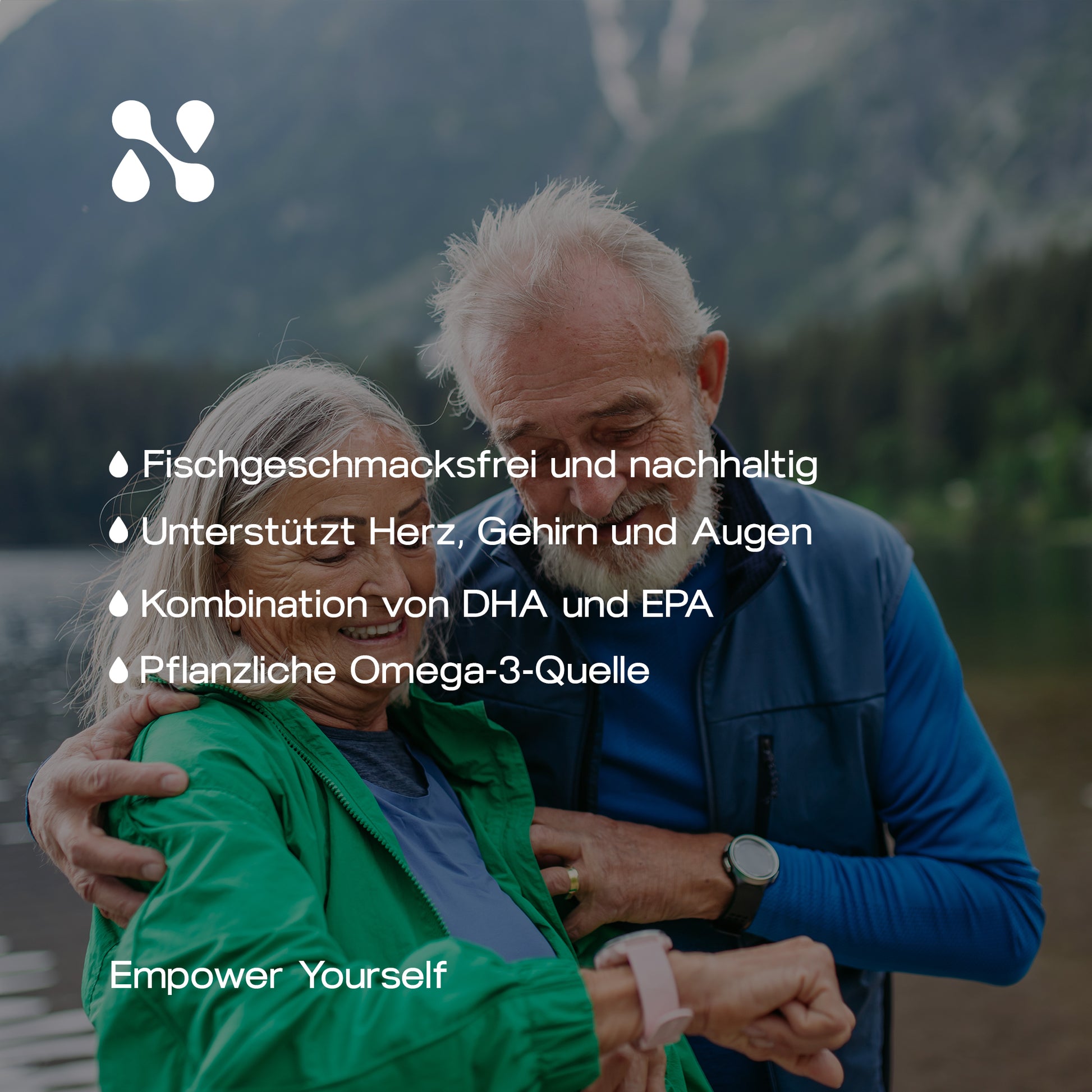 Fühlst du dich oft müde, unkonzentriert oder hast trockene Haut? Das könnte an einem Mangel an Omega-3-Fettsäuren liegen. Diese wichtigen Fette sind unverzichtbar für deine Gesundheit – sie fördern eine normale Herzfunktion, unterstützen deine Sehkraft und stärken deine Konzentration. Mit unserem Omega-3 Algenöl, einer rein pflanzlichen und nachhaltigen Alternative zu Fischöl, versorgst du deinen Körper optimal.