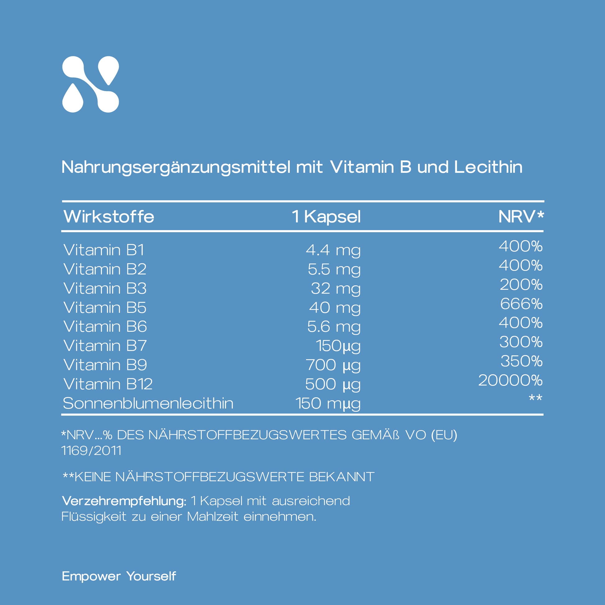 - Sonnenblumenlecithin: 150 mg